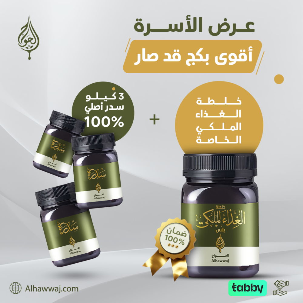 كيلو خلطة الغذاء الملكي بلس مكوناته [ عسل طبيعي + غذاء ملكات النحل + الجنسنج + حبوب اللقاح ]